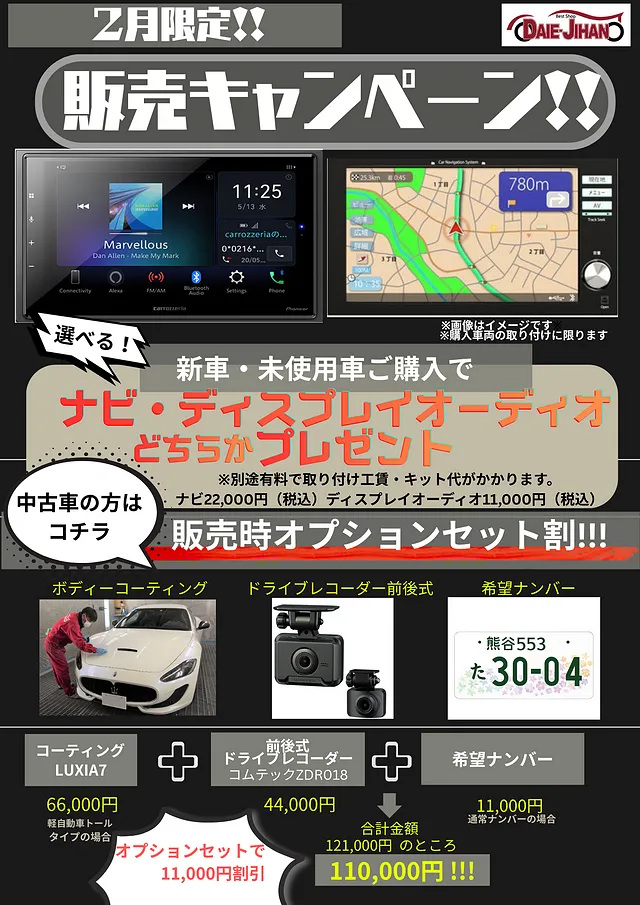 ナビ、ディスプレイオーディオのどちらかプレゼント!!