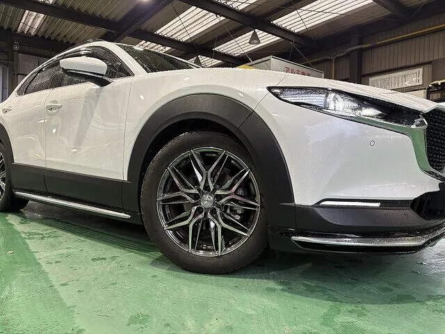 CX-30が入庫しました。今回はシルバーのキャリパーを赤色に塗装させていただきます。