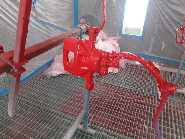 セットが終わり脱脂を十分に行ったら最初にEPプライマーを塗装します。これはいわゆる密着剤と呼ばれるもので、EPプライマーはその中でも鉄製の物と強く密着する性質を持っています。そのためキャリパー塗装の際はEPプライマーを使用して、キャリパーとカラーベースが剥がれないようにします。