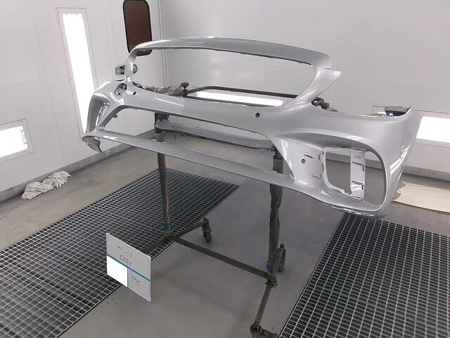 色を調色し、足付けを終えたらバンパーを塗装していきます。