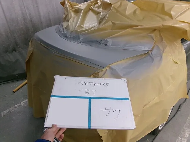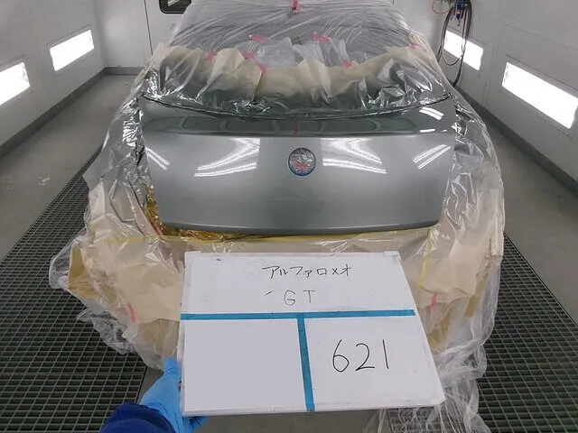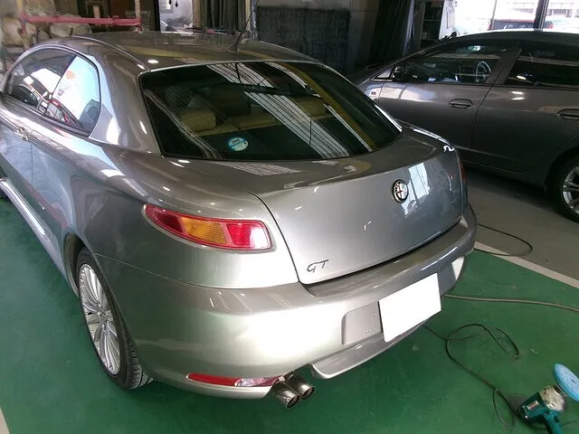 アルファロメオGTが入庫しました。今回は塗装の色あせ剥げの修理入庫です。