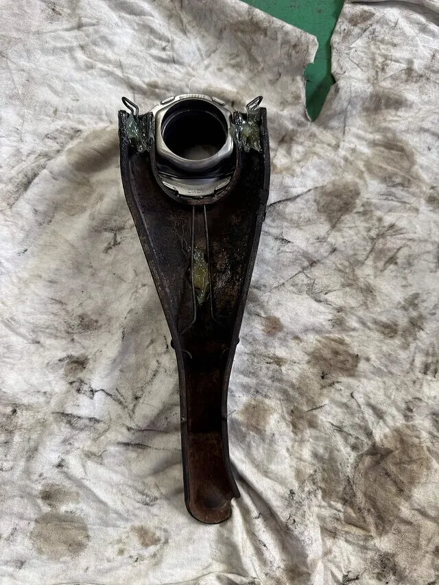 3-クリップで、クラッチレリーズベアリングをクラッチレリーズフォークに取り付けます。